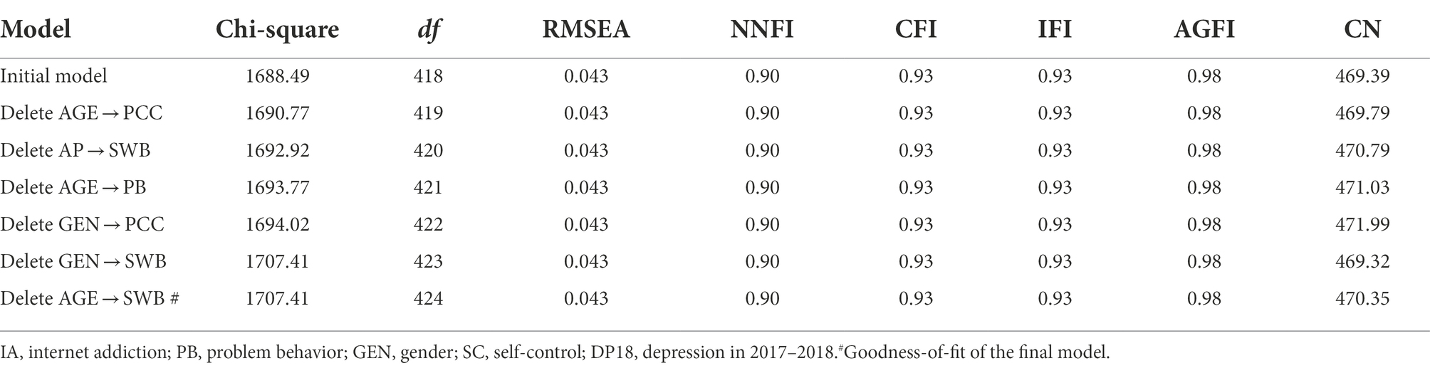 AP, Academic pressure; SC, Self-control; PCC, Parent–child conflict; SWB, Subjective well-being; PB, Problem behavior; CFA, Confirmatory factor analysis; SD, Standard deviation; SEM, Structural equation modeling.